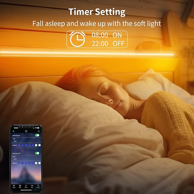- 【Safe & Bright COB LED Light Strip for Bedroom】UL-Listed power adapter ensures your safety during the usage. 24v low voltage LED strip means you can touch the lights with no danger. 180° broad lighting angle, super bright and uniform light, no spotty area. Cuttable LED tape lights, can be cut and connected to 4 Pin connectors(included in the package). Please tear off the 3M adhesive of the strip and past it to the clean and dry location, easy to install.