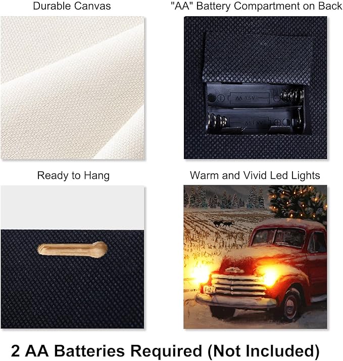 - 【Battery-operated】- Requires 2 AA batteries (not included). The on/Off switch is at the side of the frame. This framed Xmas print makes a great gift for friends and family who love Christmas decorations, and it is a wonderful addition to your own holiday decor collection