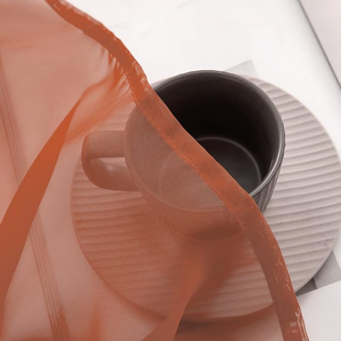 MIULEE Short Sheer Curtains 36 Inch Length for Kitchen Bathroom Cafe Half Window Treatment, Terracotta Rod Pocket Tier Fall Curtains 2 Panels 29x36 Inches Long, Burnt Orange