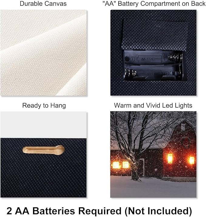 - 【Dimension】- The charming canvas is 15.75"x11.81"x0.98" in size and comes with 4 pcs LED lights that add a warm glow to the artwork, creating a cozy atmosphere in any room
