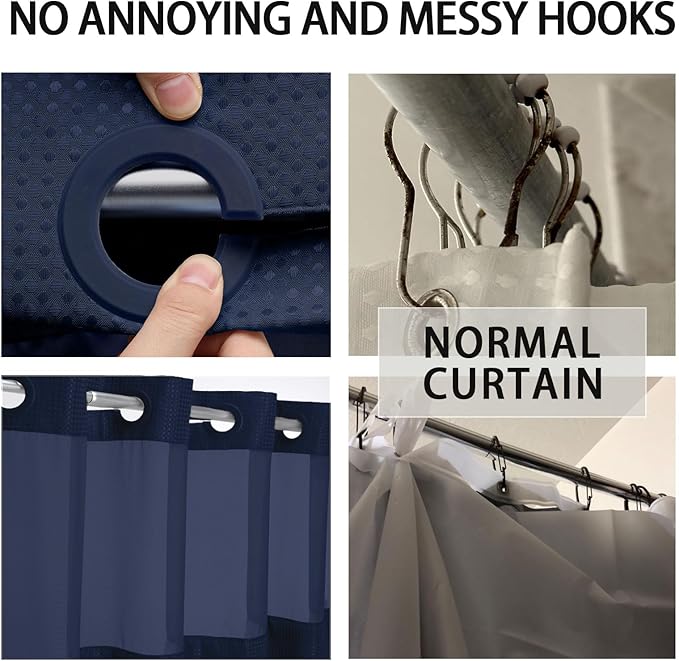 YellyHommy No Hook Shower Curtain with Snap in Liner Set Less Time Navy Blue Waffle Shower Curtain for Bathroom 81" L x 72" W
