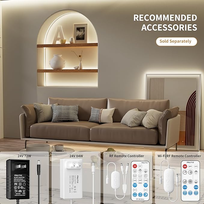 - 【UL Listed,Safer for Daily Use】Compared to regular LED strip lights,COB strip lights is soft and uniform,which is safer to your eyes.With real double-layer PCB board,the PAUTIX COB LED strip light has better heat dissipation than that of others,which is safe for children and pets to touch;UL listed, product quality is safe and secure