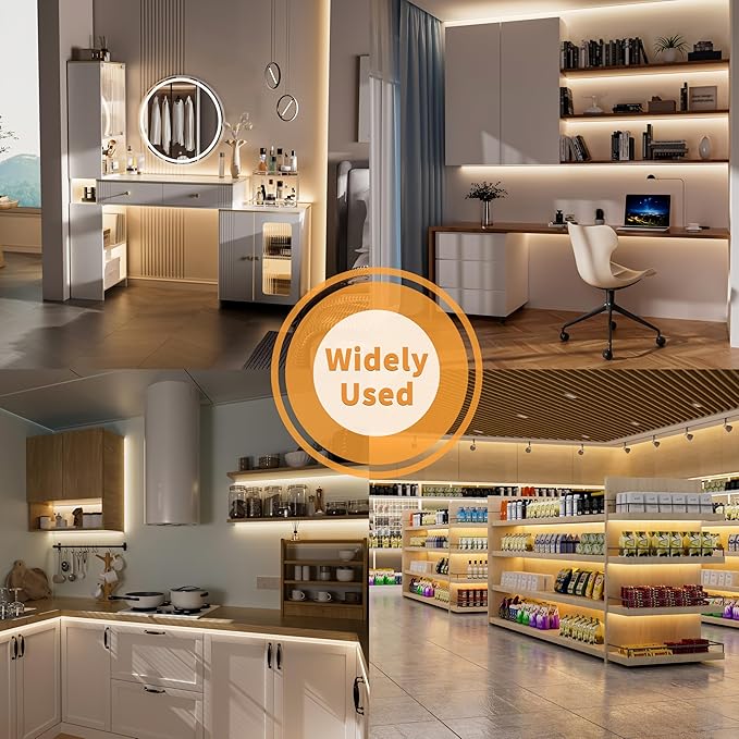 - 【Widely Use & Long Lifespan】COB LED light strip with high color rendering index(90+), rich colors and strong reduction applicable to high-end business clubs, jewelry, cabinet lighting,it also provides super bright light for your dressup mirror /make-up table /closet /bookshelf /wine shelf /TV backlight.High-quality materials and real double-layer PCB board make this COB led strip light stronger,the service life is more than 65,000 hours