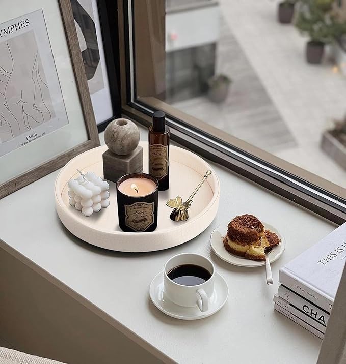 - Can have a number of uses such as a serving tray, a decorative tray, catchall tray, a tray for ottoman coffee table, an ottoman tray for living room, a perfume tray for dresser, a decorative trays for home decor, a nightstand tray, a tea serving tray or as bar trays for liquor display, round trays for coffee table. Add a unique touch to your living room, home or office space! A perfect gift for friend.