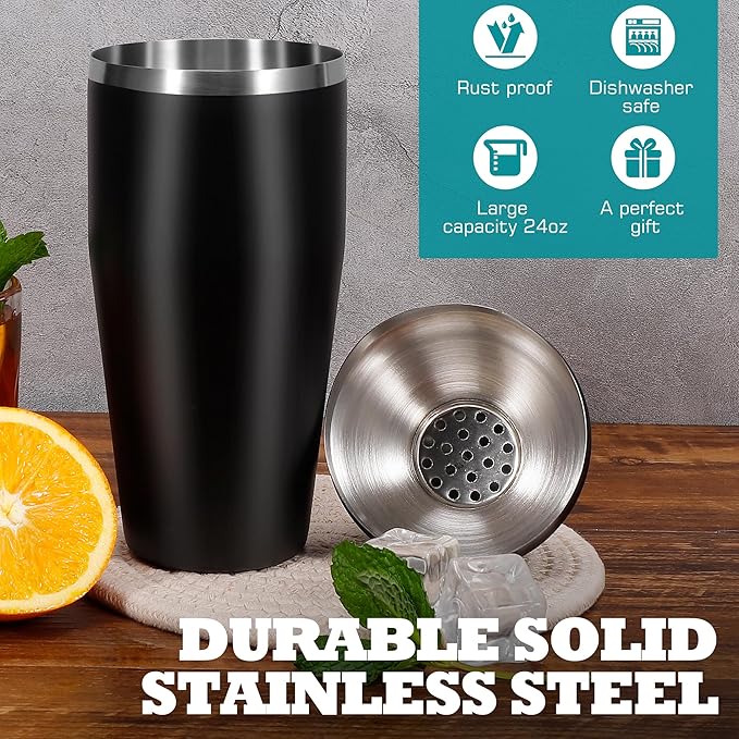 - Stylish and Classic Design: Our black cocktail set uses high-quality matte black spray paint, which perfectly combines elegance and sophistication. It not only highlights fashion, but is also made of high-quality stainless steel material, which is durable, with an acrylic plastic base, which is lightweight and can store all accessories