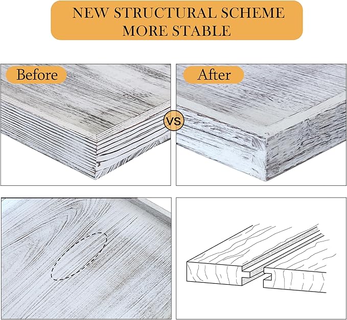 - π· HIGH QUALITY - Our extra large rustic wooden serving tray is made of sustainably sourced solid hardwood material and finished with matte transparent paint, make the wood tray easier to maintain and keep clean