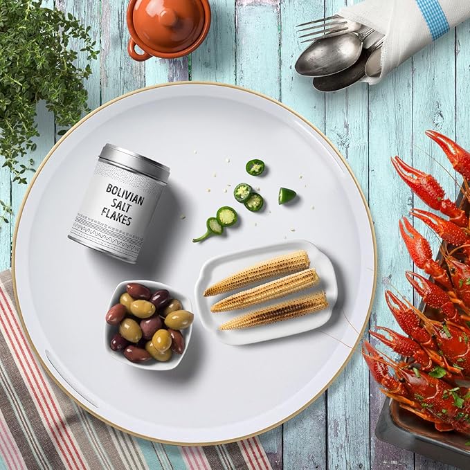 White Round Decorative Tray with Handles, 13" Versatile Serving Tray for Coffee Table, Ottoman, Ideal for Serving, Displaying, Organizing