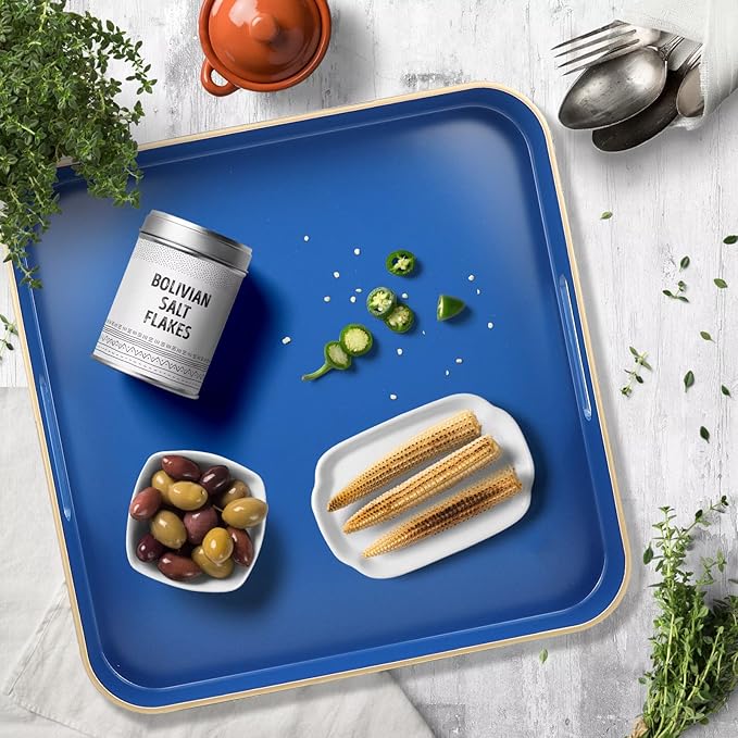 Royal Blue Square Decorative Tray with Handles, 13"*13" Versatile Serving Tray for Coffee Table, Ottoman, Ideal for Serving, Displaying, Organizing