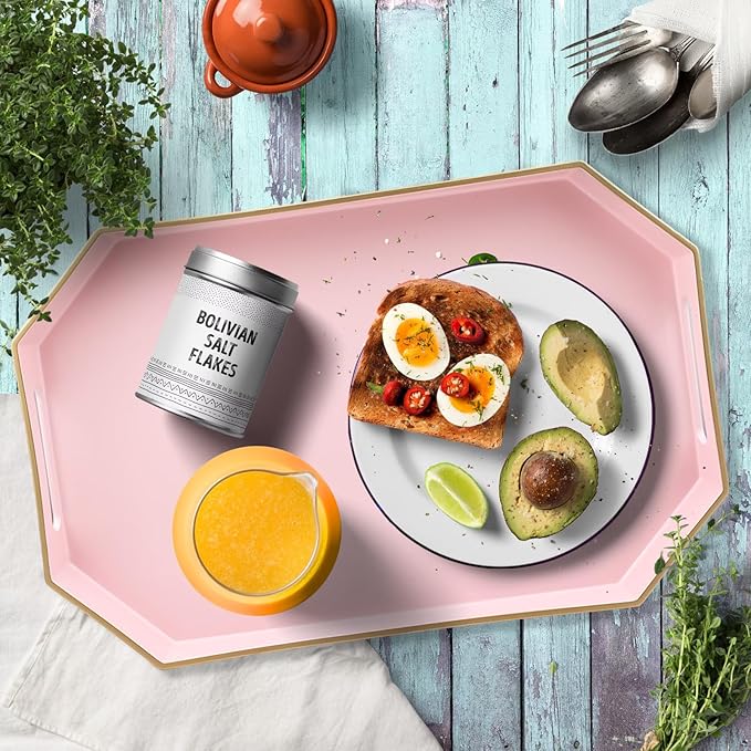 Pink Decorative Tray with Handles, Versatile Serving Tray for Coffee Table, Ottoman, Ideal for Serving, Displaying, Organizing, 15.7"*10.2"*1.57"
