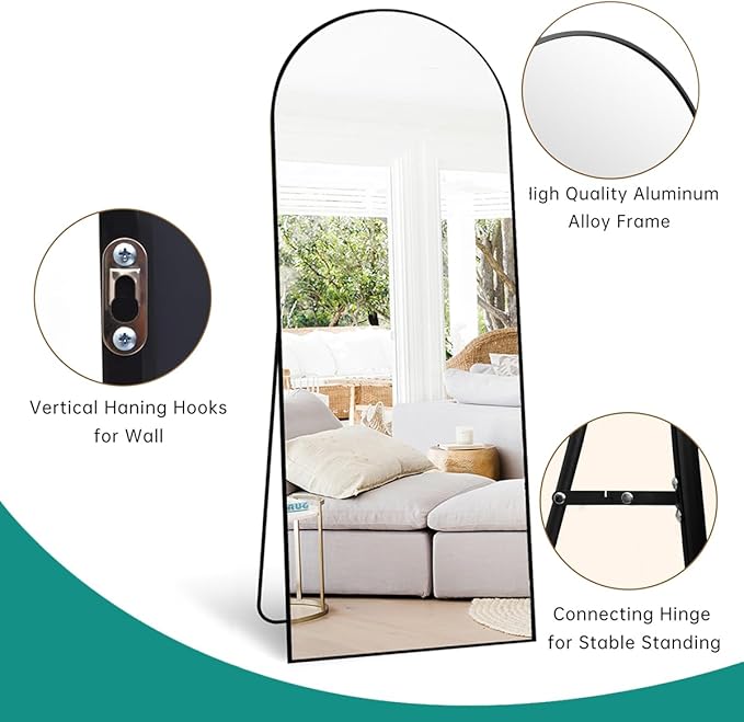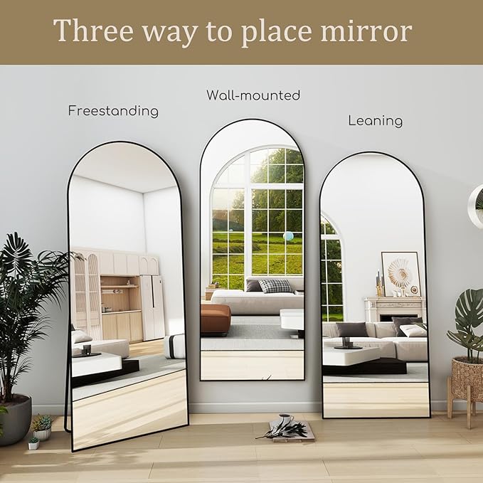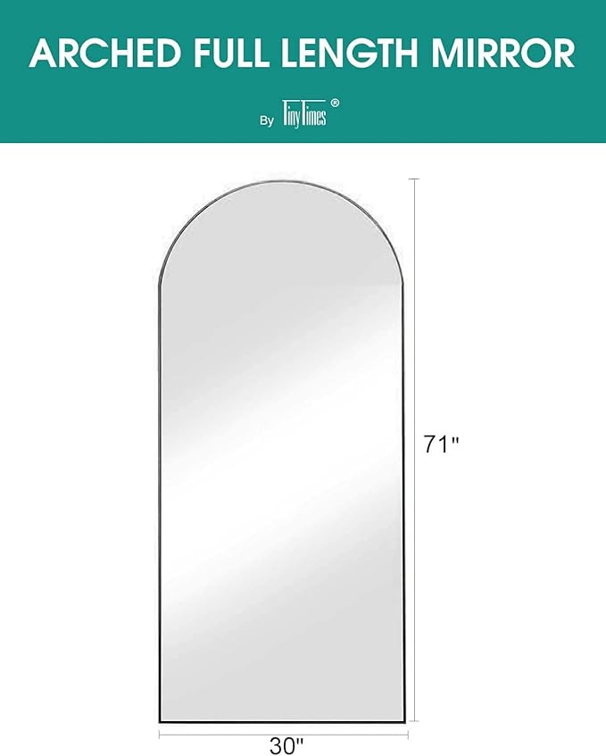 - ★【ARCHED DESIGN】Modern & Contemporary 71”x30” large Full Length Mirror with metal frame is suitable for the design style of your family. Buy it in the TinyTimes store to add a lovely high quality mirror to your home.