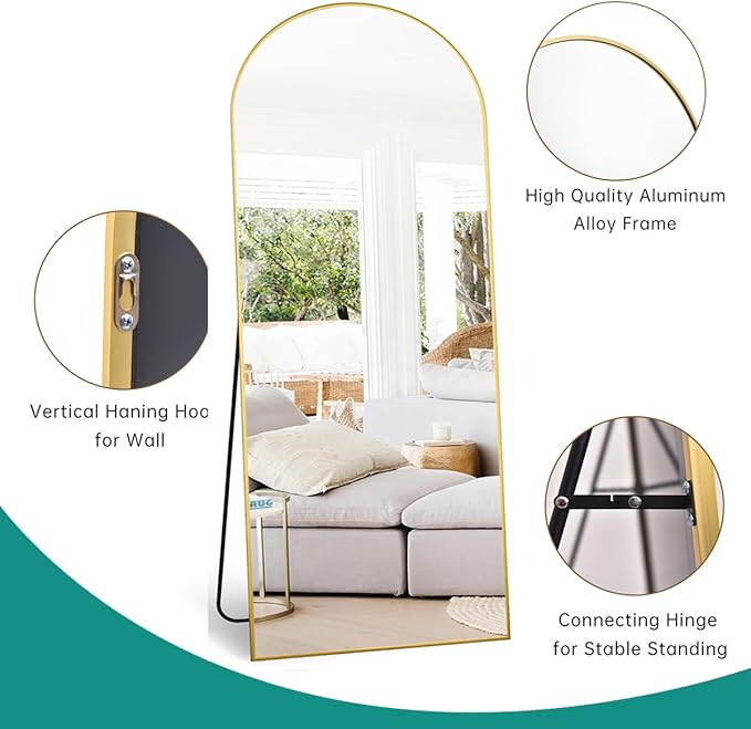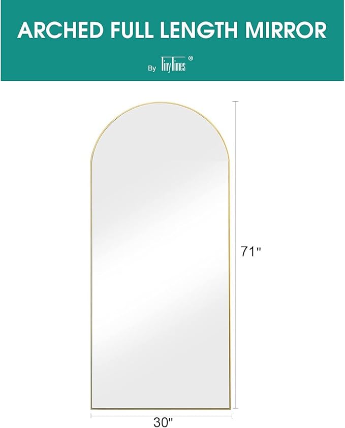 - ★【ARCHED DESIGN】Modern & Contemporary 71”x30” oversized large Full Length Mirror with metal frame is suitable for the design style of your family. Buy it in the TinyTimes store to add a lovely high quality mirror to your home.