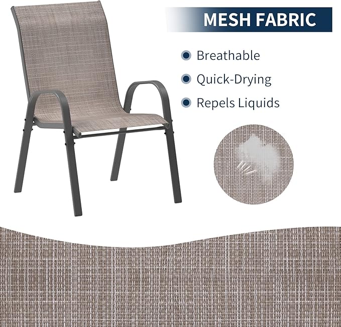 Amopatio Patio Chairs Set of 8, Outdoor Stackable Dining Chairs for All Weather, Breathable Garden Outdoor Furniture for Backyard Deck, Light Brown