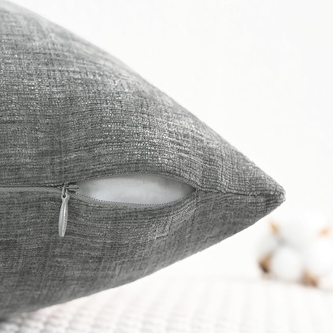 CaliTime Throw Pillow Covers Decorative 18 X 18 Inches Pack of 4 Cozy Chenille Cushion Cases for Couch Sofa Bed Living Room Home Medium Grey