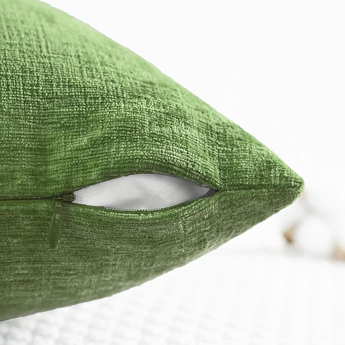 CaliTime Throw Pillow Covers Decorative 18 X 18 Inches Pack of 4 Cozy Chenille Cushion Cases for Couch Sofa Bed Living Room Home Forest Green