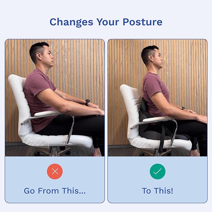 - 1️⃣ It delivers adjustable lumbar support, pushing your lower back forward to encourage frequent adjustments.