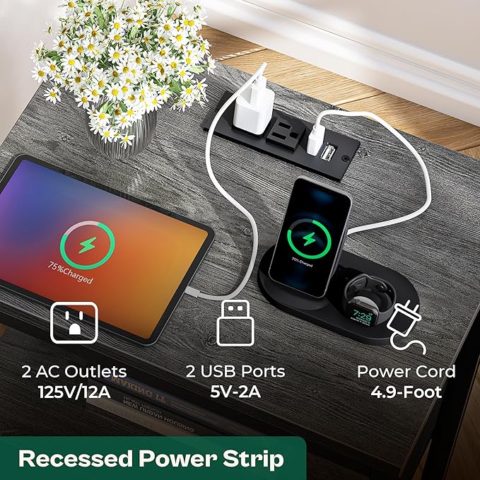 - 【Night Stands with Charger Station】Find more charging spots on the tabletop of the nightstands set of 2. 2 USB ports and 2 AC outlets on each tabletop let your devices always be fully powered up at bedside. Plus: Contain patent pending drawer slide