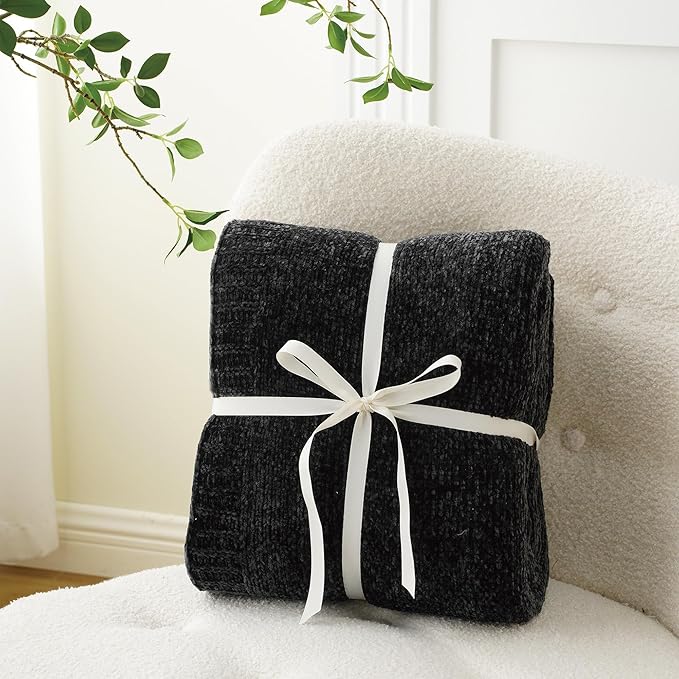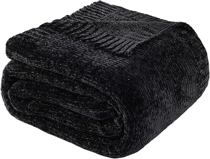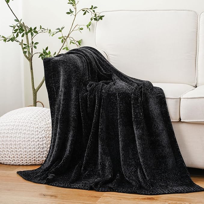 - VERSATILE & COZY: This black chenille throw blanket is soft and comfortable, large enough to cover two people. You can wrap yourself up while watching TV on the sofa or relaxing on bed. Widely usage makes this cozy throw blanket a great option for your friends and families