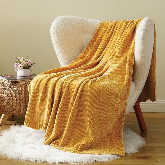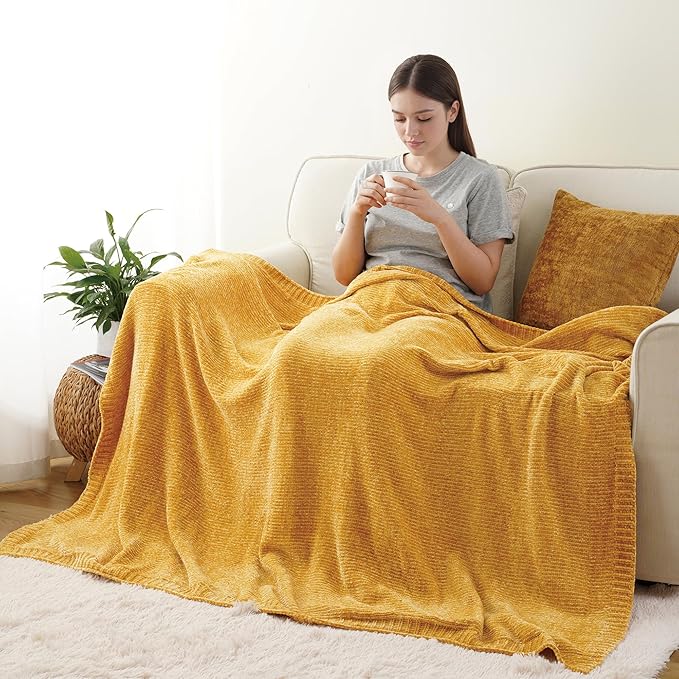 - VERSATILE & COZY: This yellow chenille throw blanket is soft and comfortable, You can wrap yourself up while watching TV on the sofa or relaxing on bed. Widely usage makes this cozy throw blanket a great option for your friends and families