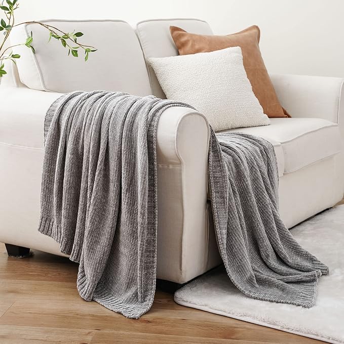 - VERSATILE & COZY: This grey chenille throw blanket is soft and comfortable, You can wrap yourself up while watching TV on the sofa or relaxing on bed. Widely usage makes this cozy throw blanket a great option for your friends and families