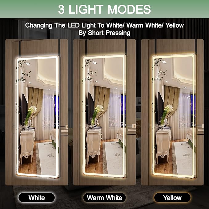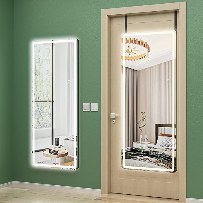 - 👍【Reliable & Safety Protection】The door mirror surface is clear and bright, giving distinct, lifelike image and well-lit reflection, more convenient for you to complete dress up or makeup. The full-length mirror is covered by an explosion-proof membrane for shattering prevention. It prevents the glass from falling even if the mirror is impacted by an external force, making it safer and more protective against injury.