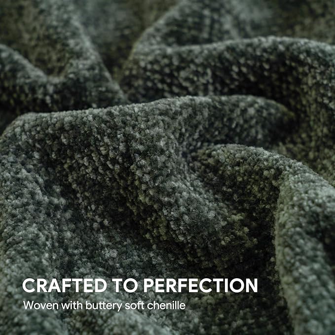 RECYCO Throw Blanket Soft Cozy Chenille Throw Blanket with Fringe Tassel for Couch Sofa Chair Bed Living Room Gift (Dark Green, 50" x 60")