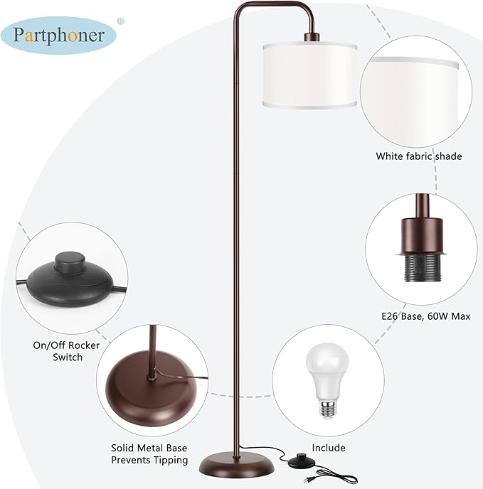 PARTPHONER LED Floor Lamp for Living Room, 3 Color Temperature, with Foot Switch, 9W Bulb Included, Oil Rubbed Bronze