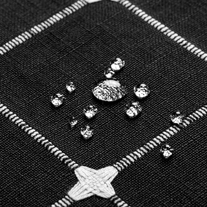 - Wrinkle Free & Ultra Thick Fabric - 310 GSM, 15% linen, 85% polyester creates farmhouse like effect for this black shower curtain, so that it could keep in place. The quality curtain is elegant and soft, which can deliver a rustic or country-like bathroom environment.