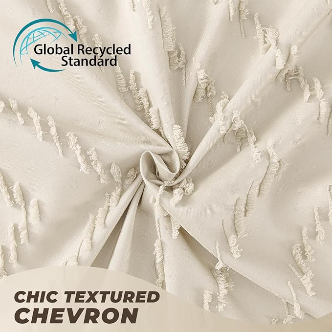 Beige Boho Shower Curtain 72 x 72 Modern Farmhouse Shower Curtain Bohemian Chic Tufted Chevron Textured Striped Minimalist Shower Curtains Woven Fabric Beige Shower Curtains