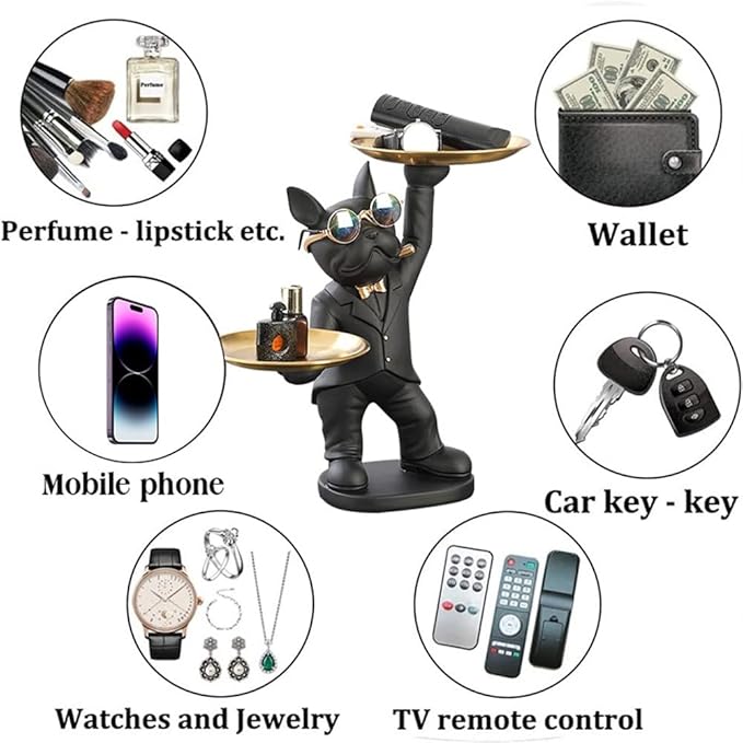 - VERSATILE & FUNCTIONAL BULLDOG ORNAMENT: This versatile bulldog ornament goes beyond its aesthetic appeal. It doubles as a candy box, but its uses are boundless – it's perfect for storing your mobile phone, keys, remote control, glasses, wallet, watch, jewelry, perfume, lipstick, and various other essentials. It seamlessly blends functionality with aesthetics.
