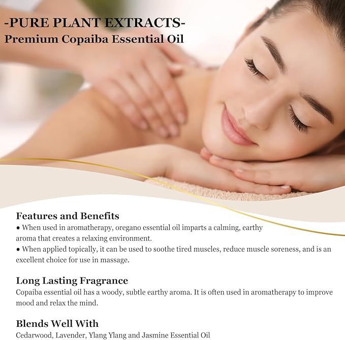 EUQEE Copaiba Essential Oil 118 ml Pure Copaiba Oil Essential Oil with Dropper for Diffusers, DIY Soap, Candle Making, Aromatherapy (4fl oz)