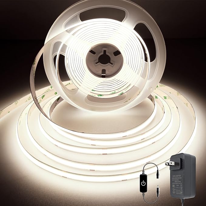 - 【Very easy to Install】:Plug and play for COB led tape kit, the 24V 36W power supply,4000K COB LED lights has a soft and high density specification level, which can also be bent as desired. A strong adhesive is also used on the back, which can be easily attached to a wall or any smooth and clean place. And you can use scissors to cut any length along the interface, or you can work as usual.