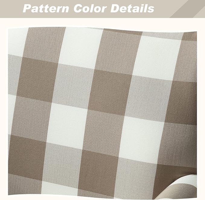 HULALA HOME Modern Accent Chairs Set of 2, Farmhouse High Back Buffalo Plaid Chairs with Wooden Legs & Nail Head Trim, Comfy Upholstered Armchairs for Living Room/Bedroom (Buffalo Beige)
