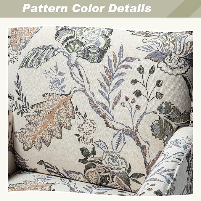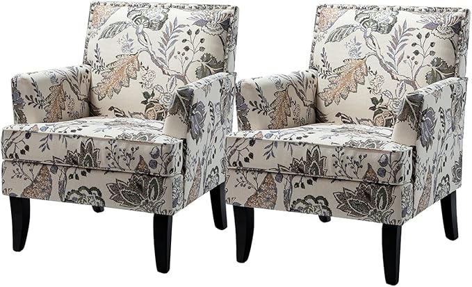HULALA HOME Modern Accent Chairs Set of 2, Farmhouse High Back Floral Chairs with Wooden Legs & Nail Head Trim, Comfy Upholstered Armchairs for Living Room/Bedroom (Orange Grey Floral)