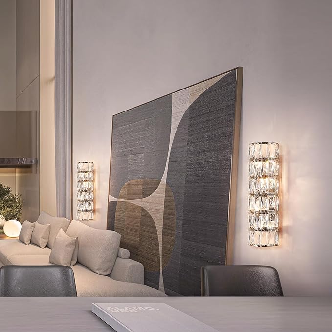 - 【Elegant Modern Chrome Luxury Crystal Wall Lights】This chrome crystal wall lights is made coating process, anti-corrosion and anti-rust metal lamp body and shiny K9 crystals. Beautiful crystal design, and the metal cover forms a balance between modern industry and classic elegant style.