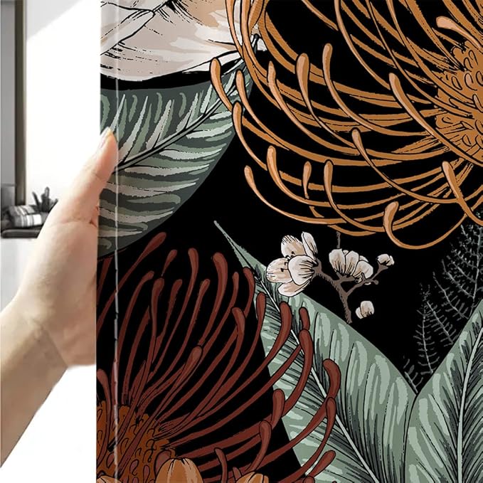 Sanzugh Boho Floral Shower Curtain, Pretty Vintage Bohemian Flower Botanical Leaves Fabric Shower Curtains Set for Bathroom Decoration with Hooks 72 X 72 inch Black Dark Bath Decor