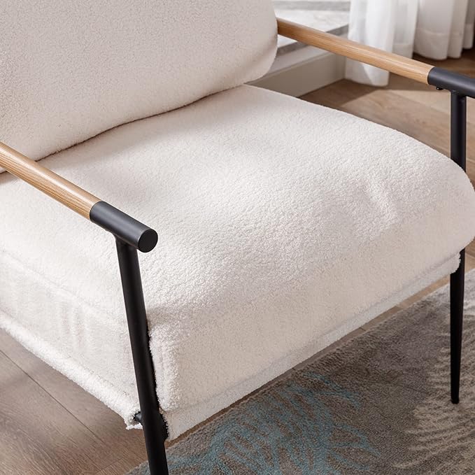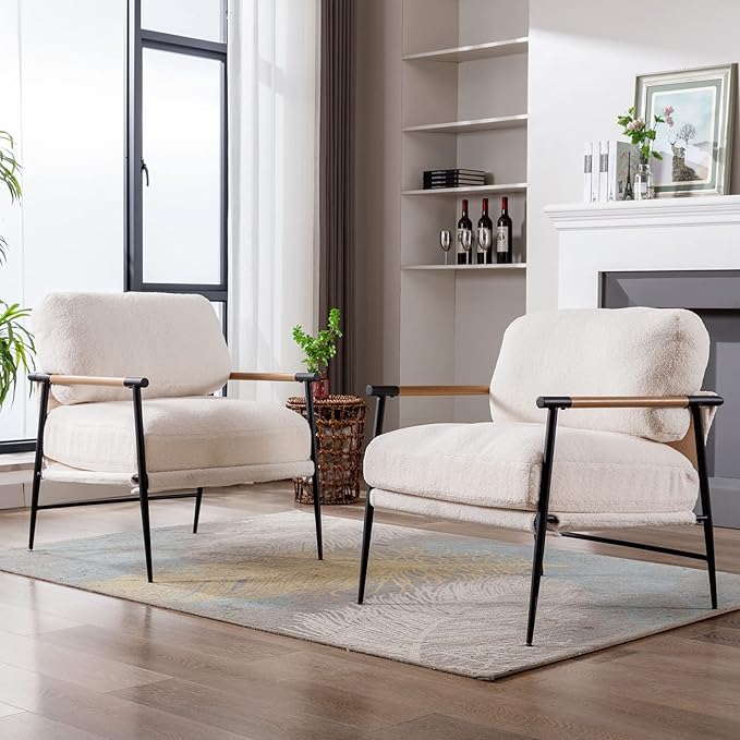 DUOMAY Mid-Century Modern Accent Chair Set of 2, Comfy Sherpa Sofa Lounge Chair Reading Corner Chair for Living Room Bedroom Office, Mid-Back Arm Chair with Black Metal Leg, White