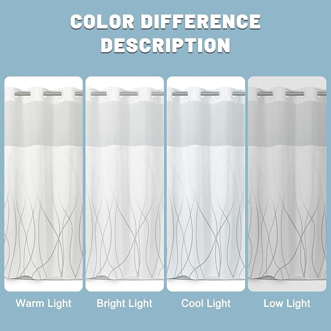 - Easy to Clean & Care: The 100% polyester shower curtain with snap-in liner is machine washable. Maximum ironing temperature: outer curtain 110°C/230°F, liner 70°C/158°F Note: Simple ironing can create a better visual experience