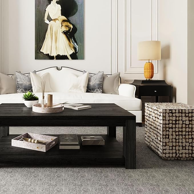 - [EASY TO CARRY AND USE]: The coffee table tray is fully assembled, no installation needed. 2 stable insert handles help you carry bread, snacks, drinks or foods easy. The smooth finished surface makes it easy to hand wash or wipe this lacquered serving tray with a damp cloth.