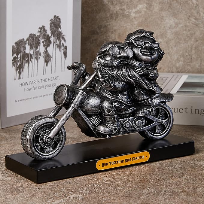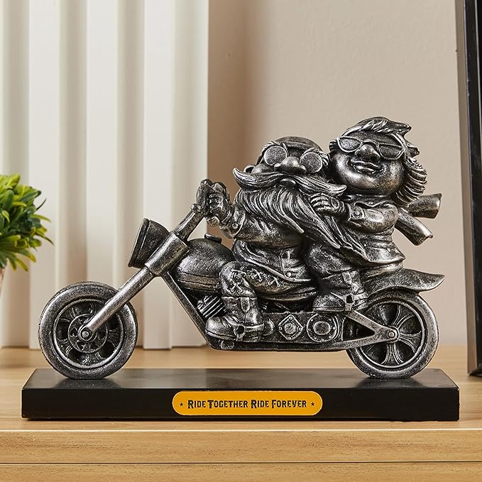 Home Decor 7.6'' Motorcycle Biker Couple Sculpture for Men Birthday Gift for Biker Lover Polyresin Retro Cool Inspirational Motorcycle Rider Figurine Halloween Figurine