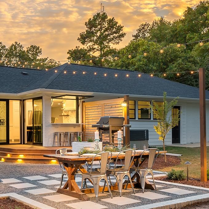 - All Weather Resistance: Waterproof outdoor string lights with IP45 waterproof grade and waterproof tail plug, commercial for outdoor use, it can withstand extreme hot temperatures, rain, wind and humidity. No need to worry about melting bulbs or water ingress. Please note: Tighten each bulb before use