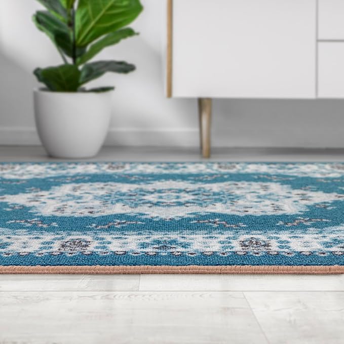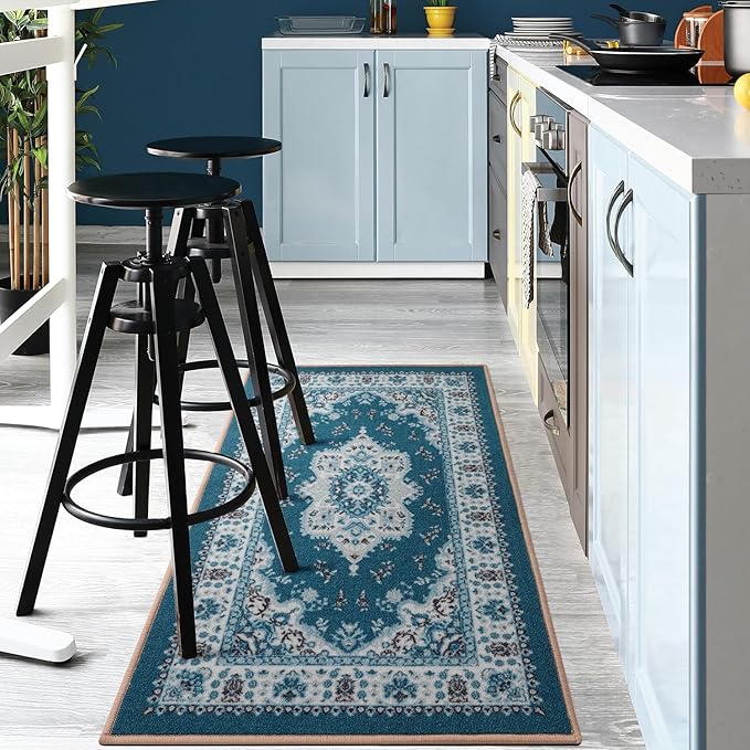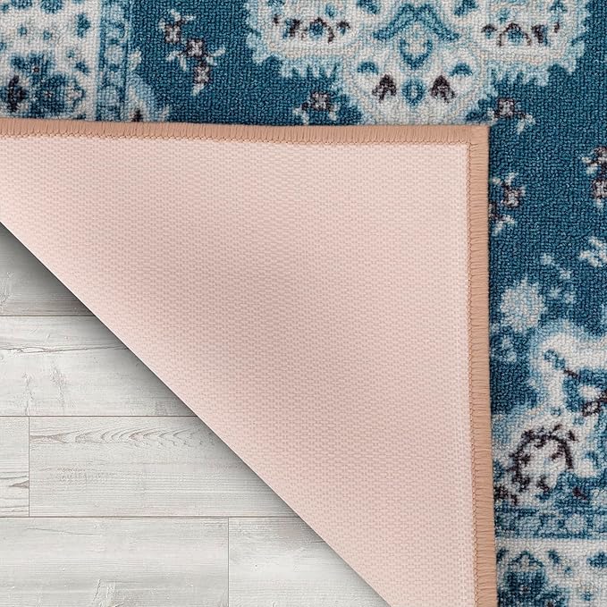 Antep Rugs Alfombras Oriental Traditional 2x4 Non-Skid (Non-Slip) Low Profile Pile Rubber Backing Kitchen Area Rugs (Turquoise Blue, 2'3" x 4')