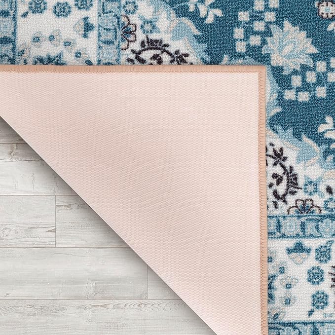 Antep Rugs Alfombras Oriental Traditional 4x6 Non-Skid (Non-Slip) Low Profile Pile Rubber Backing Indoor Area Rugs (Turquoise Blue, 4' x 5'8")