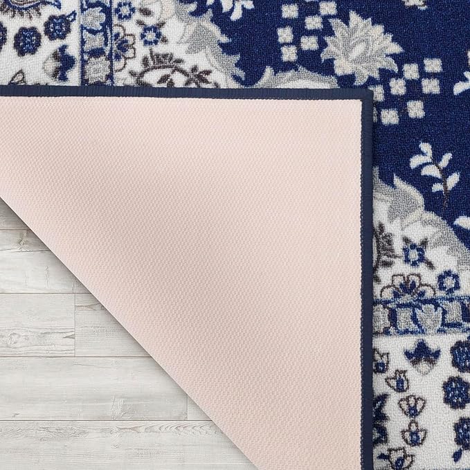 Antep Rugs Alfombras Oriental Traditional 5x7 Non-Skid (Non-Slip) Low Profile Pile Rubber Backing Indoor Area Rugs (Navy Blue, 5' x 7')
