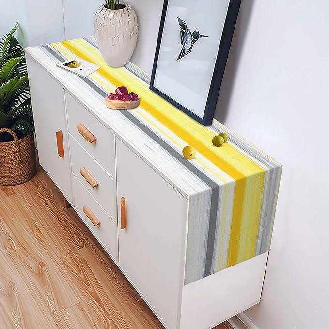 Emvency Yellow Abstract Table Runner, Modern Grey White Striped Dining Decor for Kitchen Coffee Table Family Dinners Holiday Parties Wedding Events Decor(13x72 inch)