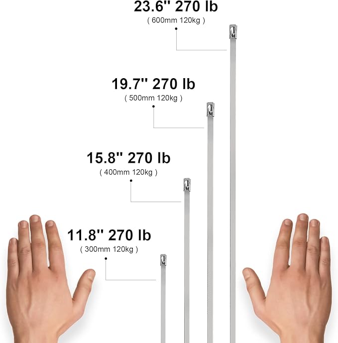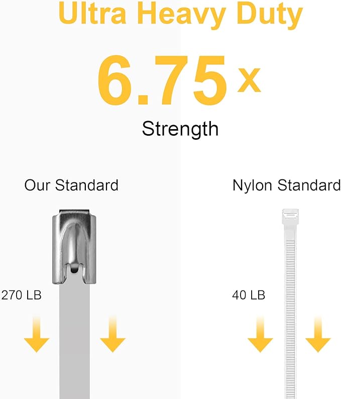 - [Premium Stainless Steel Cable Zip] Made of all 305 material, the stainless steel cable tie comes with excellent acid and alkali resistance, abrasion resistance, and anti-aging.
