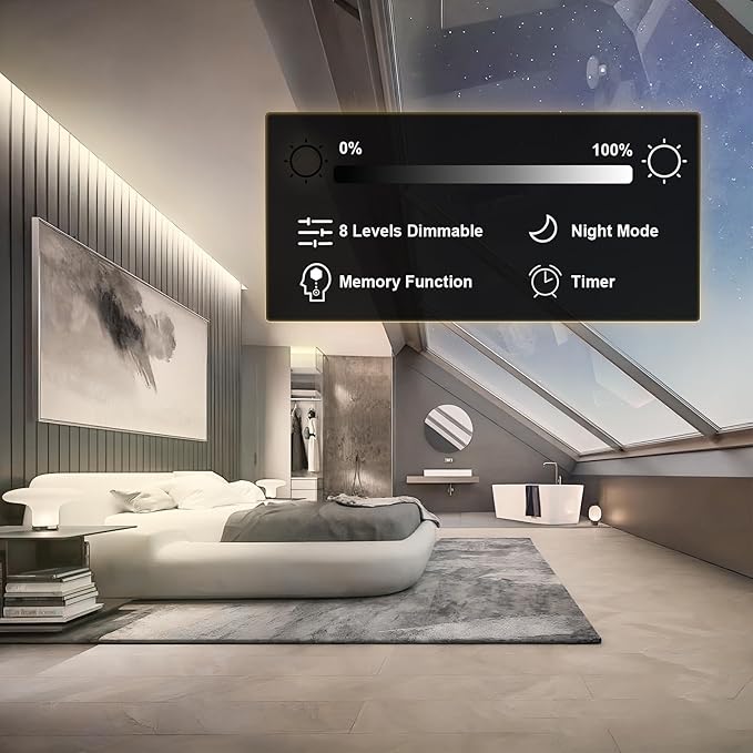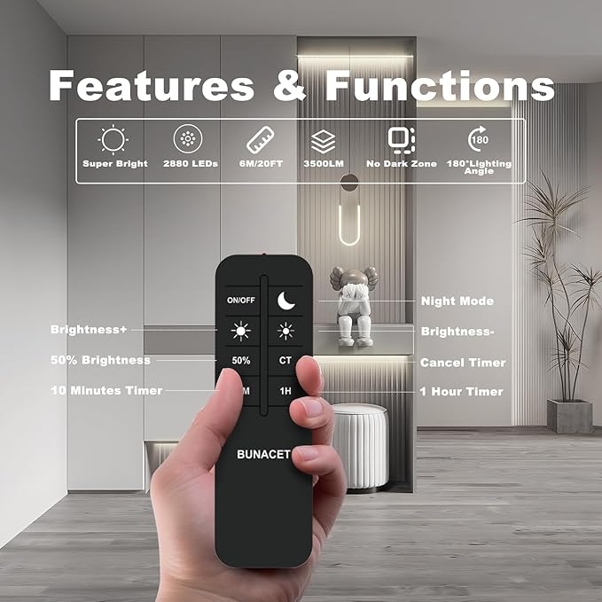 - White COB LED strip light with remote, 360 degree all-round controllable, the remote control distance up to 49ft - 66ft (15-20 meters), perfect to make up for the shortcomings of IR remote control. Dimmable LED strip lights with night mode, timing and memory function, it will remember the state when it was last turned off, and the mode and brightness will be the same as the last one when it is turned on again.