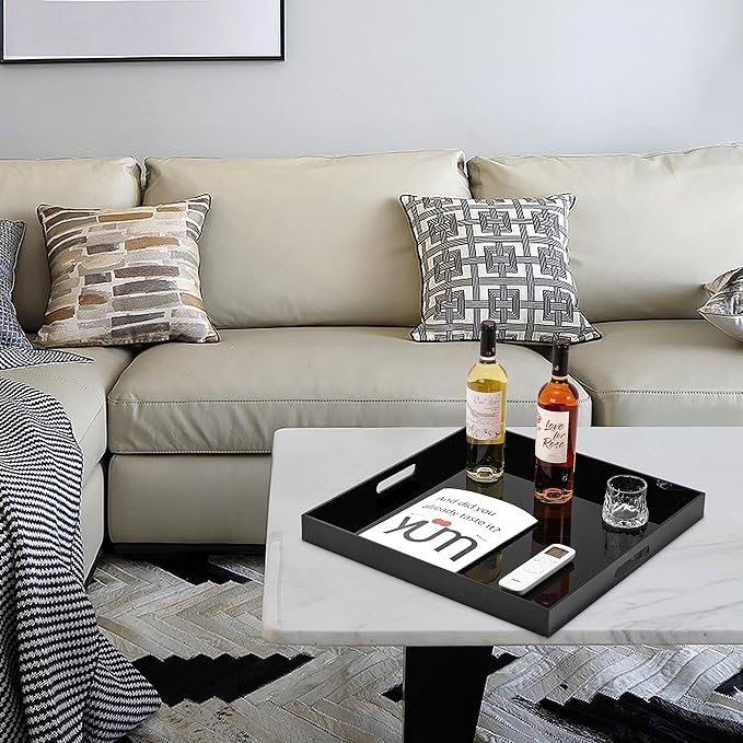 King Size Acrylic Tray with Embedded Handle,No Need to Assemble-for Bed,Ottoman,Coffee Table, Breakfast, Tea, Food, Butler - Decorative Tray (24x24 Inch, Black)