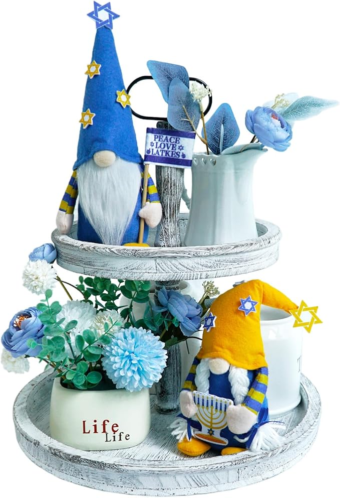 Hanukkah Gnomes Jewish Gifts and Decorations - Menorah Decor, Chanukah Gnome Gifts, Ornaments for Home and Tiered Tray