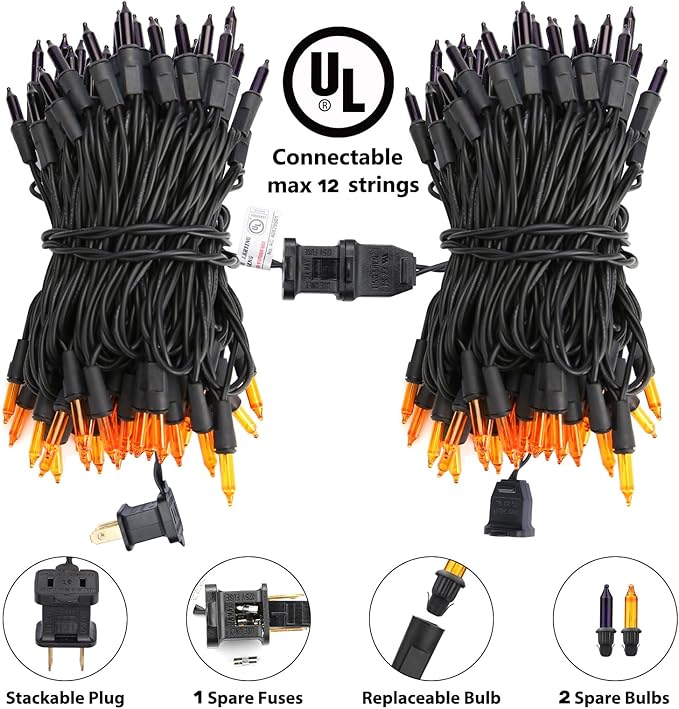 - End-to-End Connectable & Easy to Install: Each Halloween string light features a male and a female safe plug, an easy end-to-end connection allows up to 10 strands (125ft in total) connected together to illuminate a wider range. Just hang the string light on wherever you like, power on, you will get a charming night with these bright lights!
