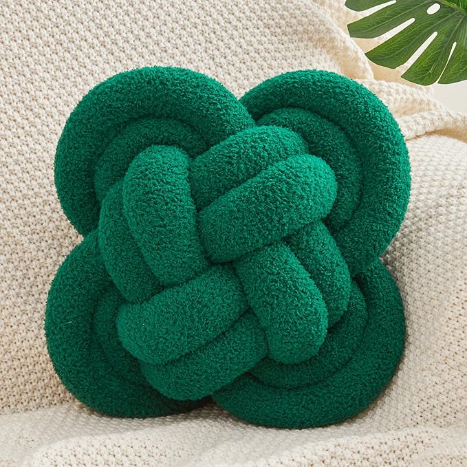 Xiashrk Knot Pillow Ball, 12" Soft Decorative Throw Pillows for Couch Bed, Dark Green Knotted Plush Throw Pillow Handmade Square Cushion Home Couch Decor Pillows for Living Room
